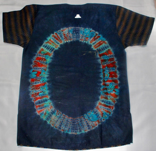 African Traditional Adire Batik T-shirt Multi-coloured Cotton Linen designs (Africa Symbol)
