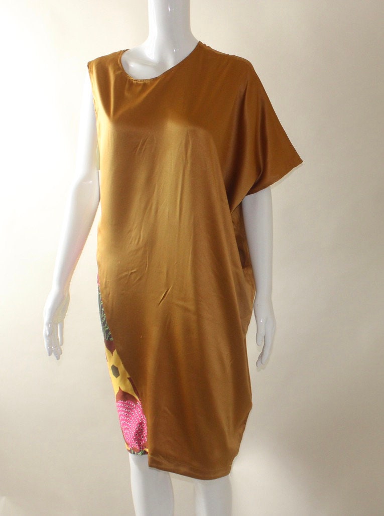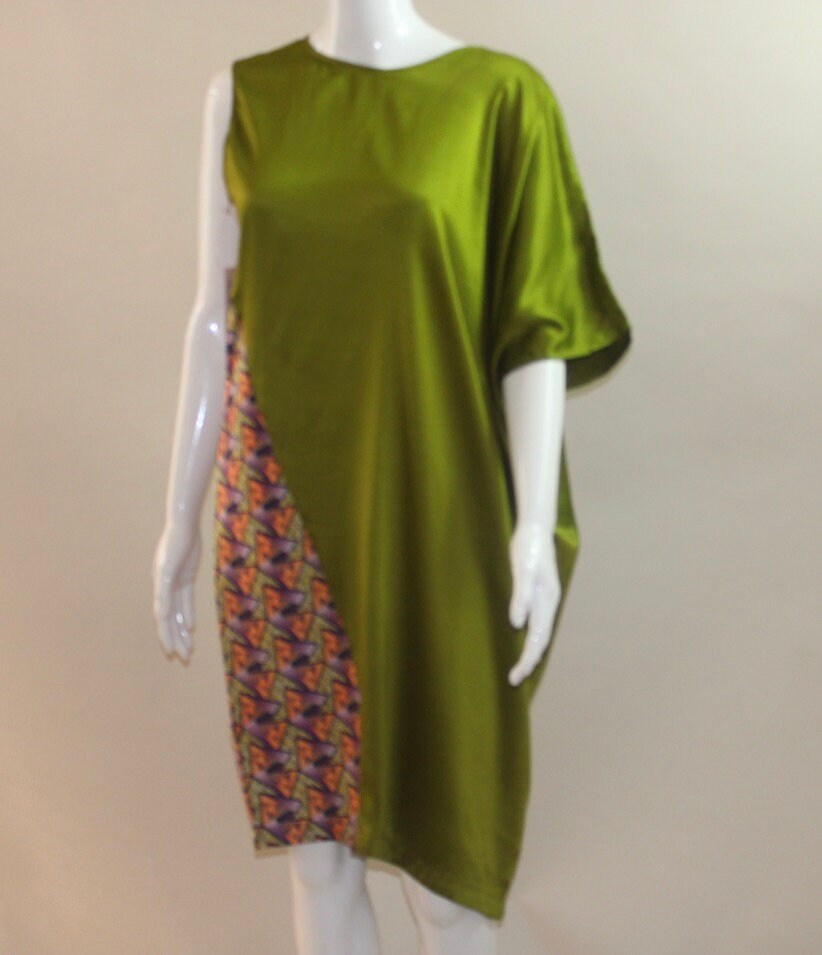 Queen and Tribe Colourful African Ankara Silk dress (S/M/L) Green, Red, Orange etc.